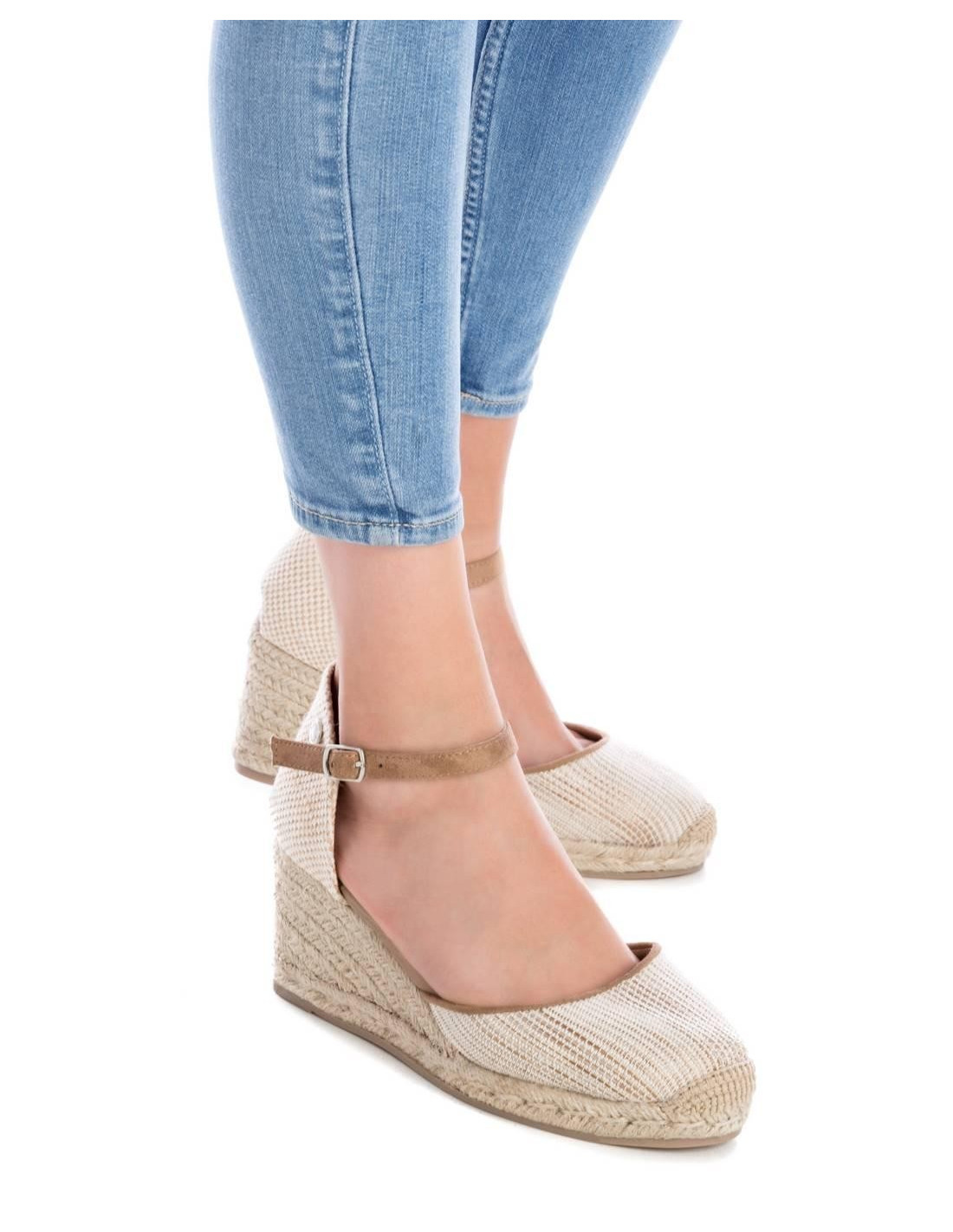 Sandalia de mujer Pitillos con plataforma cruzada en tono dorado: estilo y confort en tus pasos veraniegos.