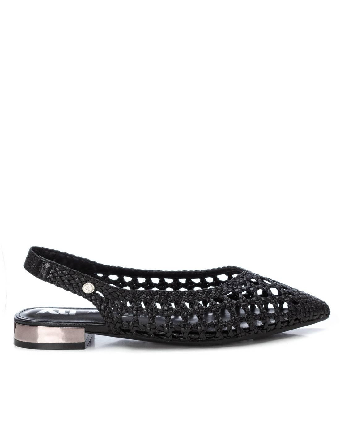 Zapato destalonado de mujer, de la marca Xti. Fabricado en material imitación piel con acabado metalizado. Modelo trenzado con pulsera elastica en el tobillo con muy buena sujeción. Ideal para todos tus conjuntos.Este modelo ha obtenido el certificado vegano por la organización mundial PETA (Organización de los derechos de los animales).