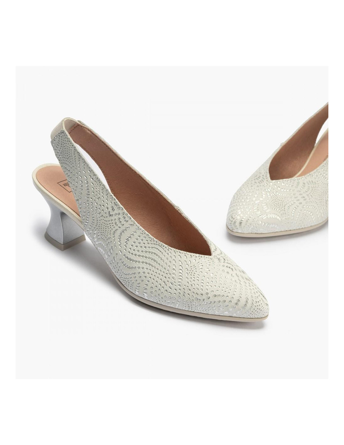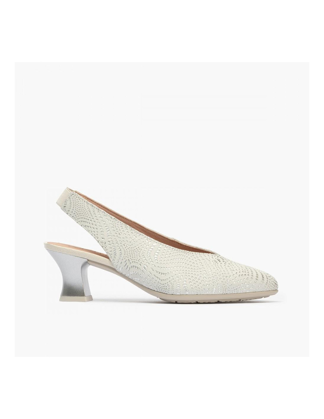 Sandalia en goma beig esclava con adorno abalorio y con suela super blanda y flexible.