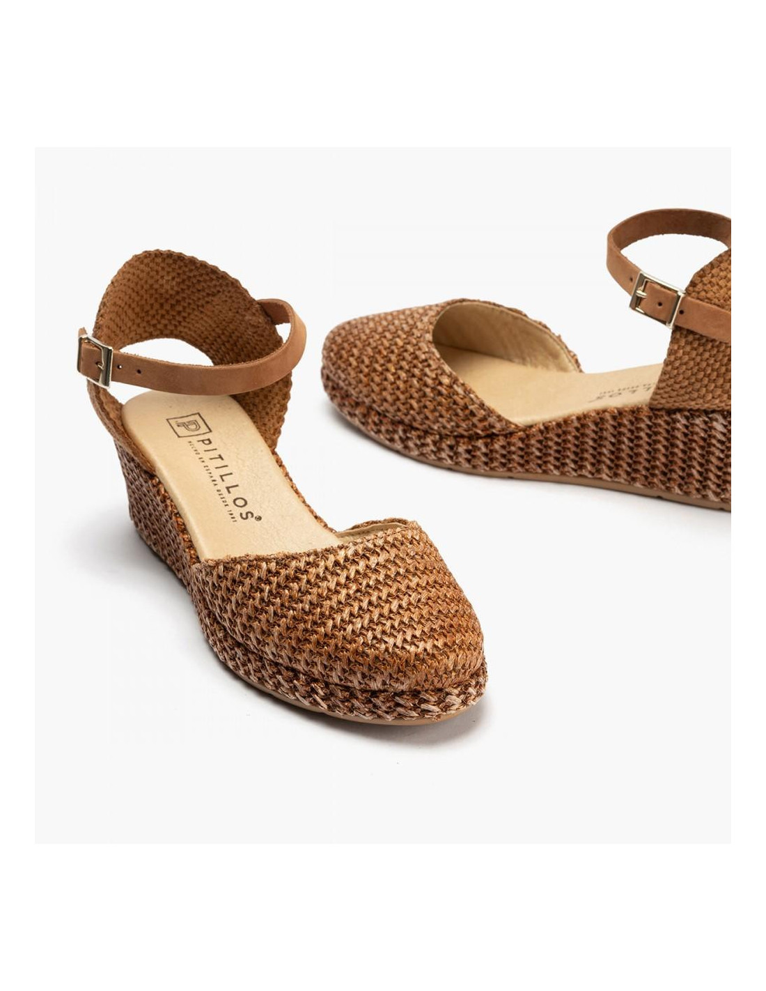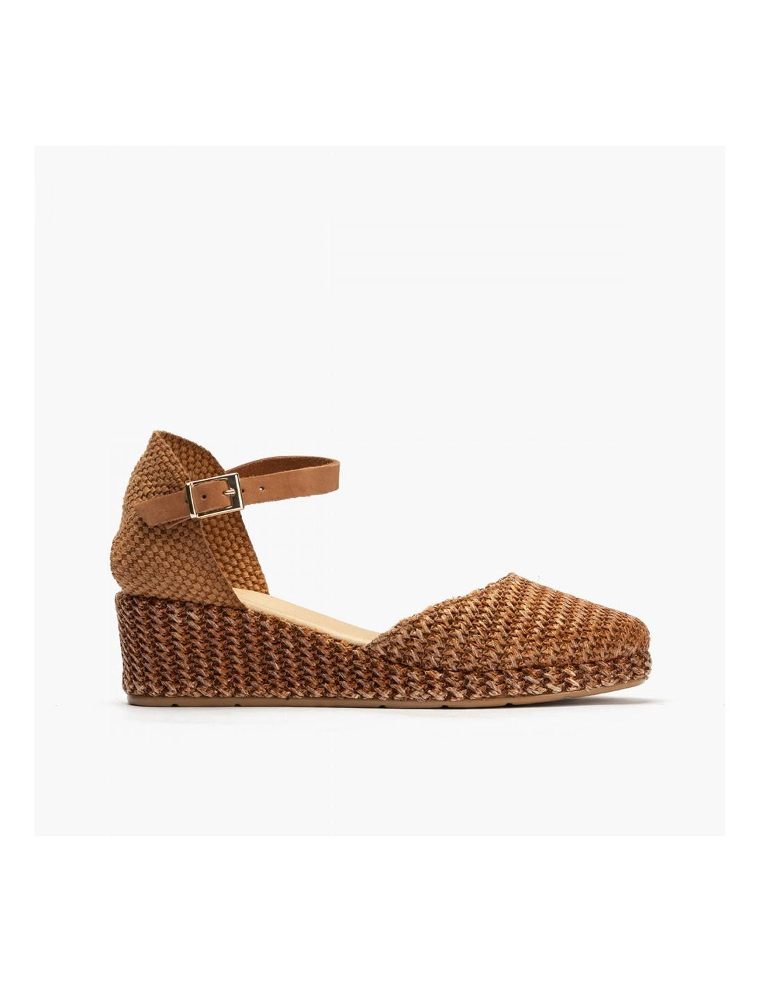 Sandalia Valenciana de rafia redondo en marrón claro: Textura y estilo rústico para un verano natural y cómodo.