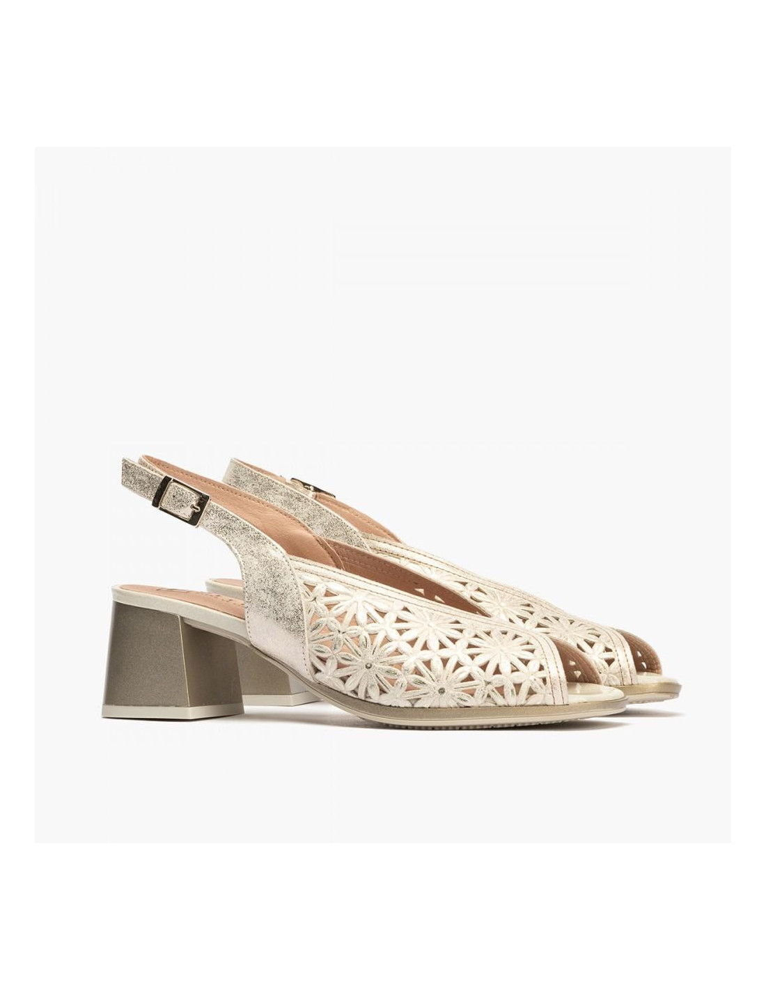 Mercedes con doble correa mujer con hebilla en piel laminado ORO