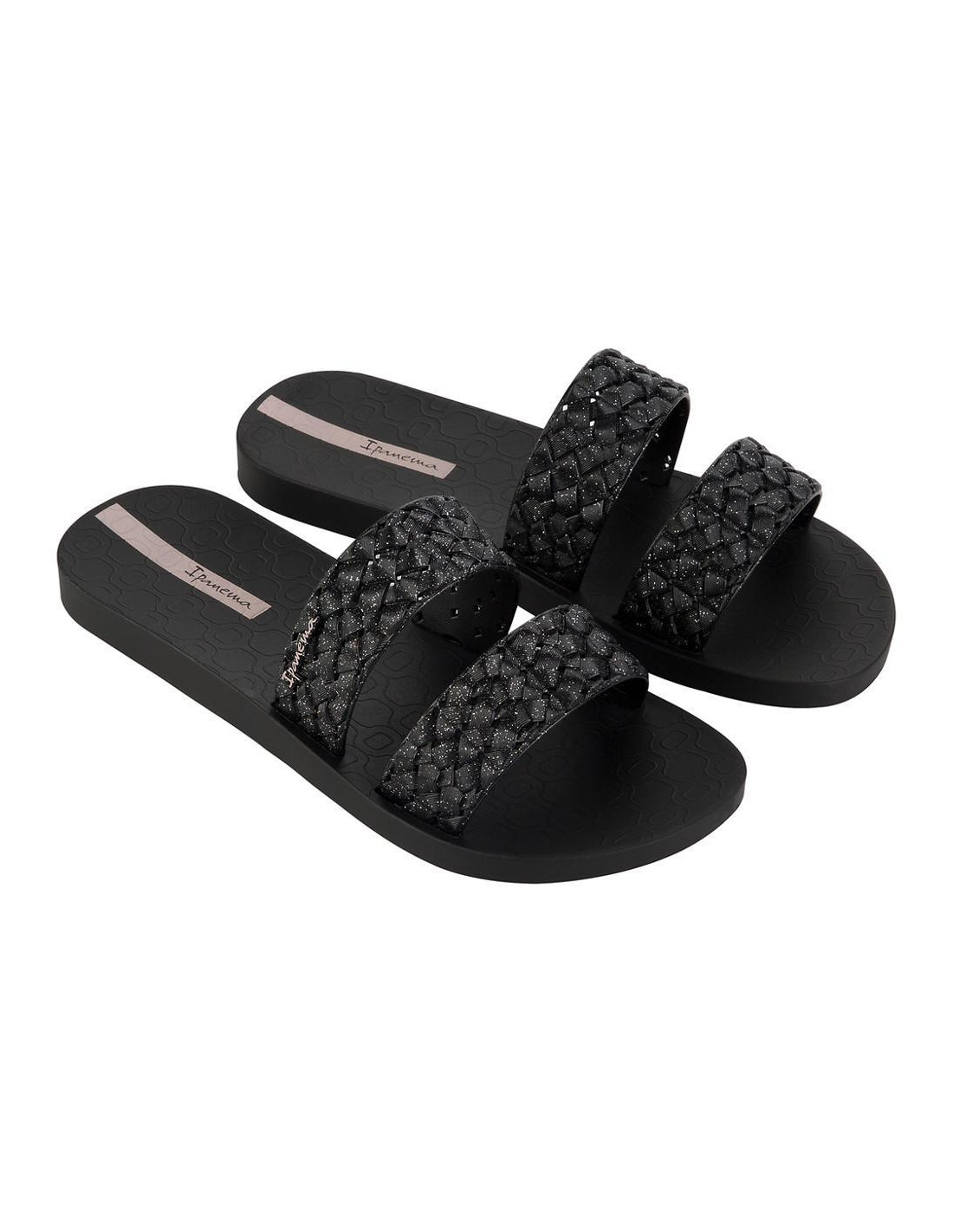 Sandalia goma negro para el agua con dos tiras cruzadas.