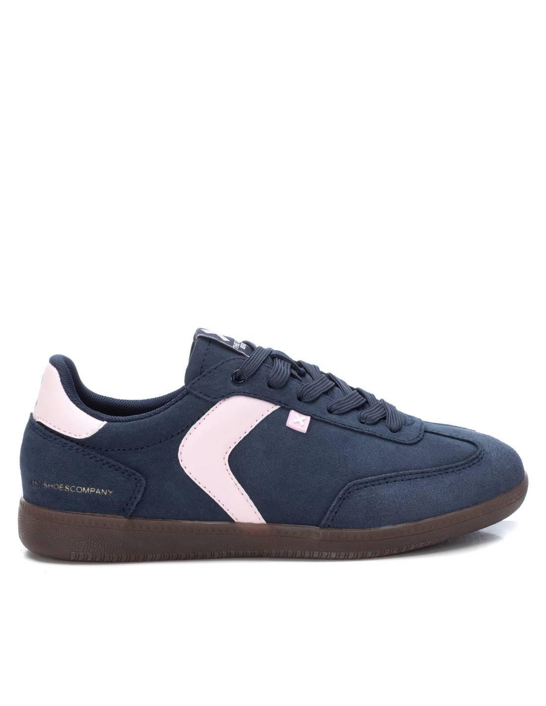 Zapatilla bamba combinada en pu y serraje azul con piso caramelo.