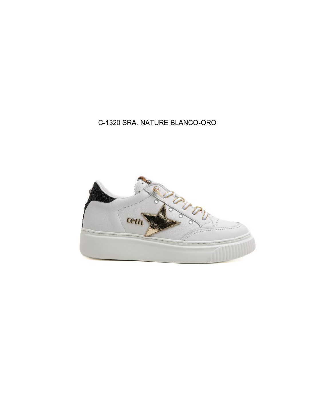 Zapatilla de mujer, de la marca Xti. Fabricada en material metalizado que imita la piel con detalle de troquelado decorativo. Cierre mediante cordones ajustables. Con plantilla extraíble. Cuña con suela de goma antideslizante.