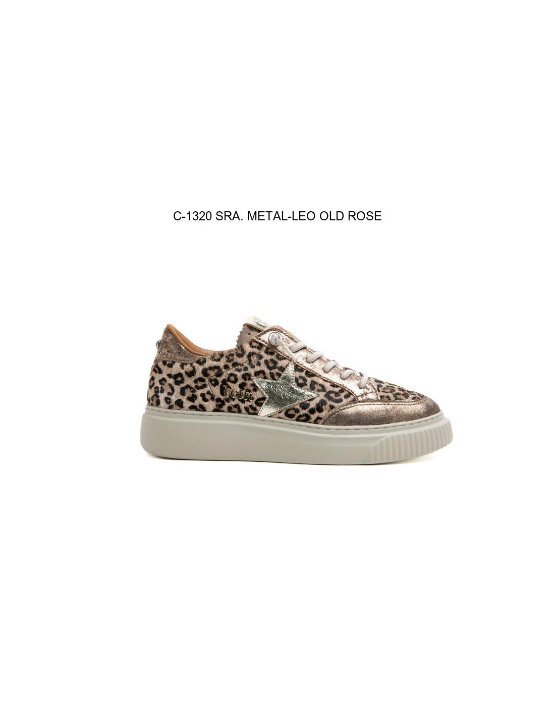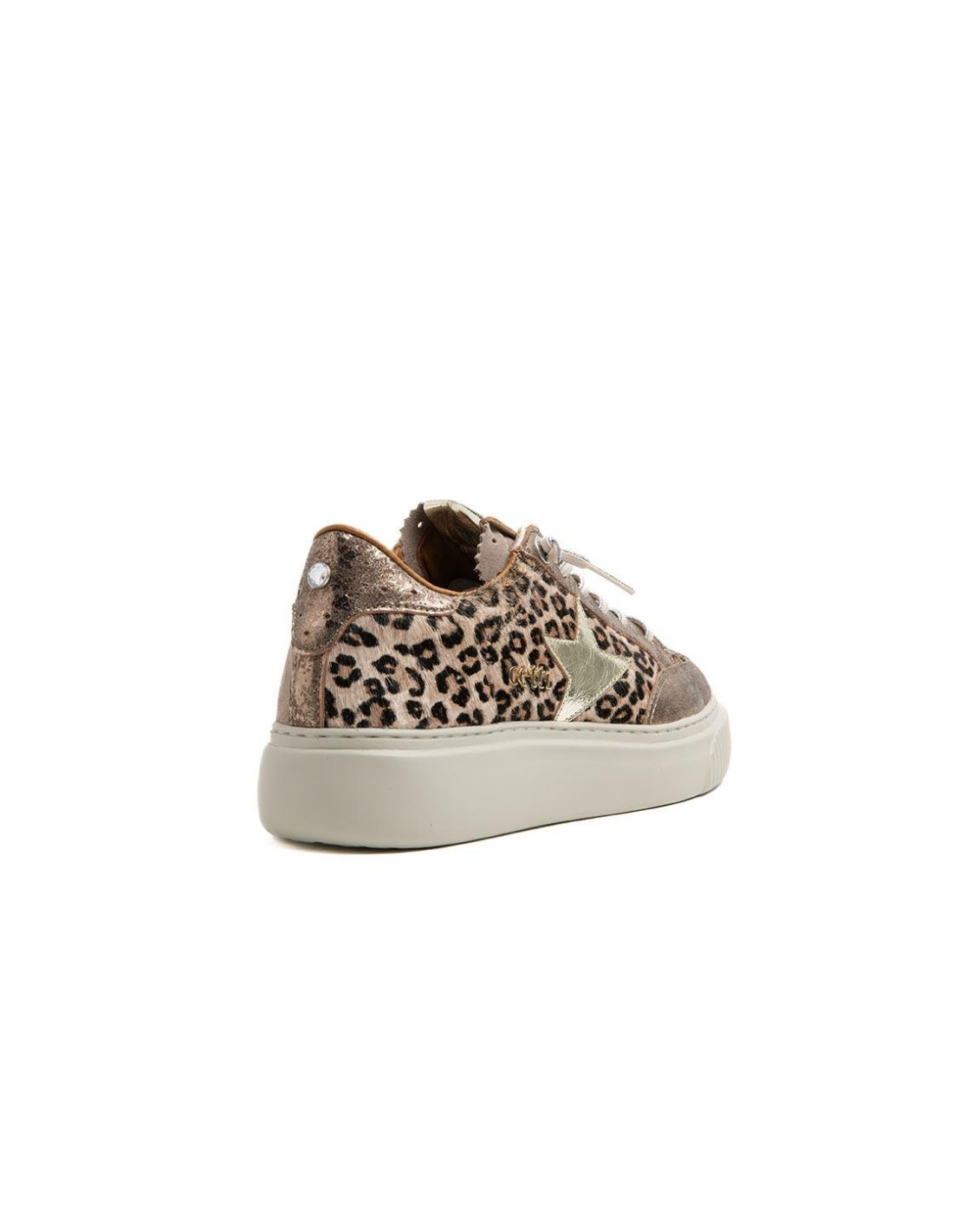 Zapatilla tenis en piel leopardo adorno estrella con cordon elastico.