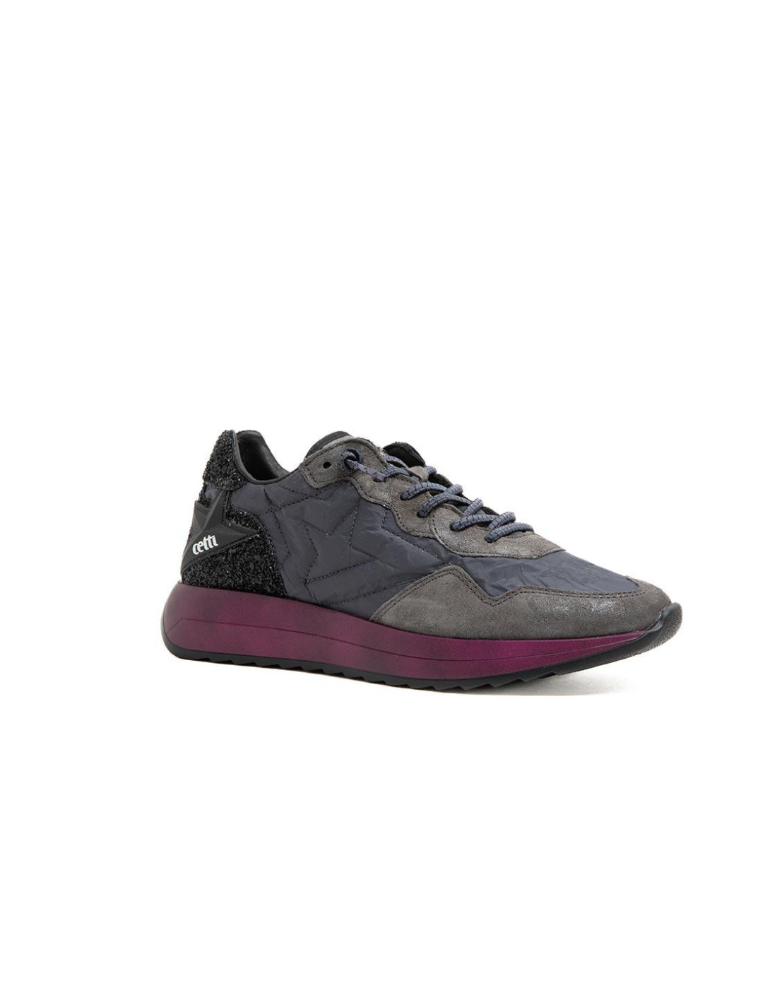 Zapatilla running en piel y nylon beig adorno estrella con cordon elastico.