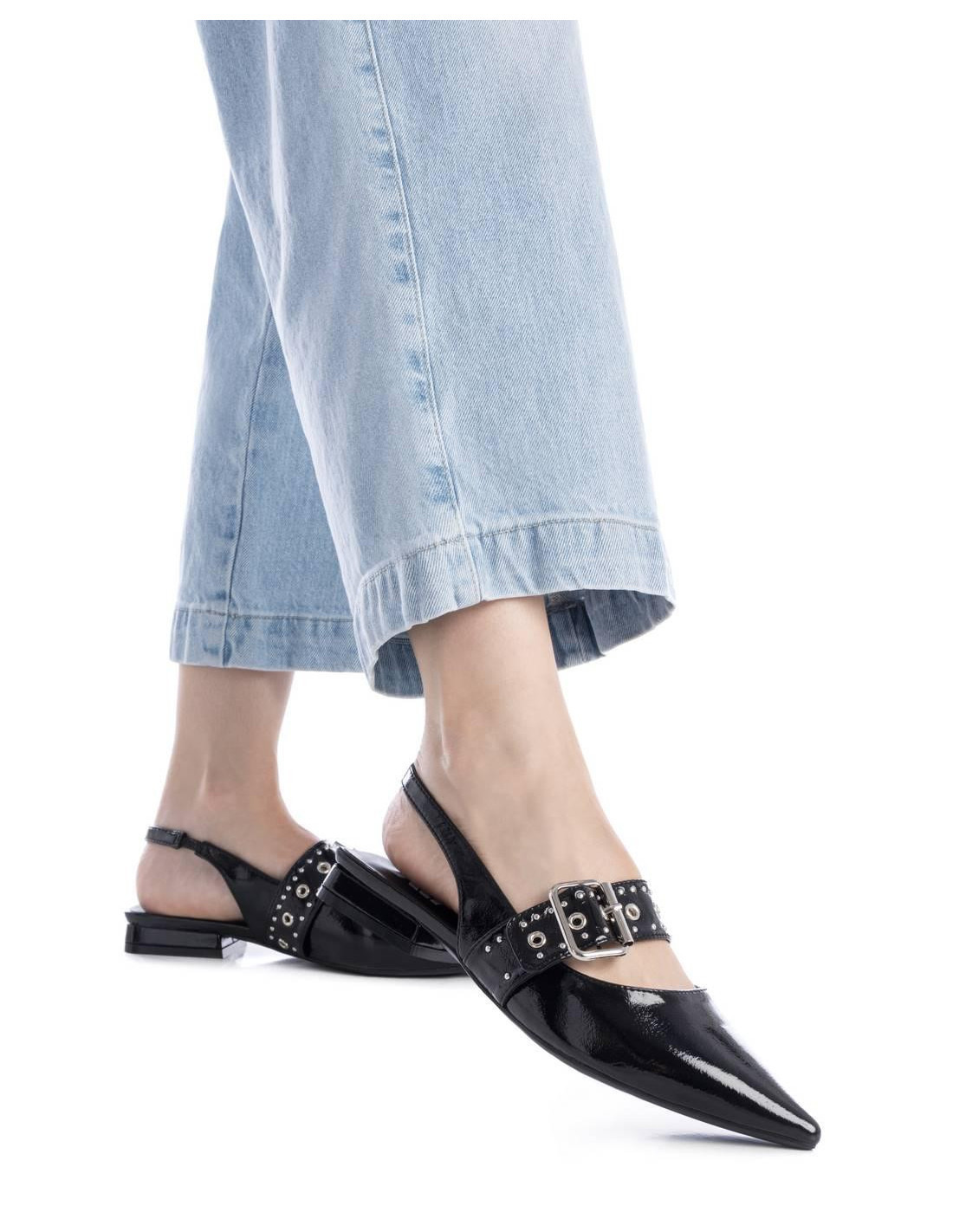 Bailarina de mujer, de la marca Xti. Fabricada en material charol. Modelo de punta con tira ajustada mediante hebilla.