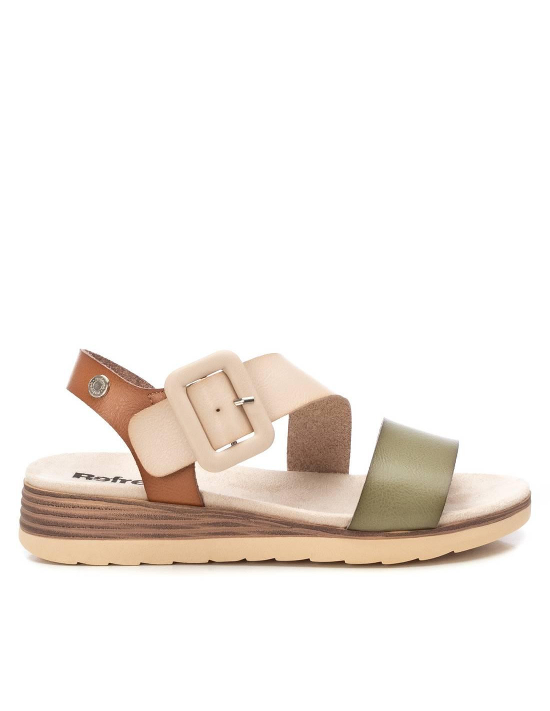 Sandalia de mujer de la marca Refresh. Fabricada en material que imita la piel. Correa cruzada con hebilla de gran tamaño para un buen ajuste al pie.