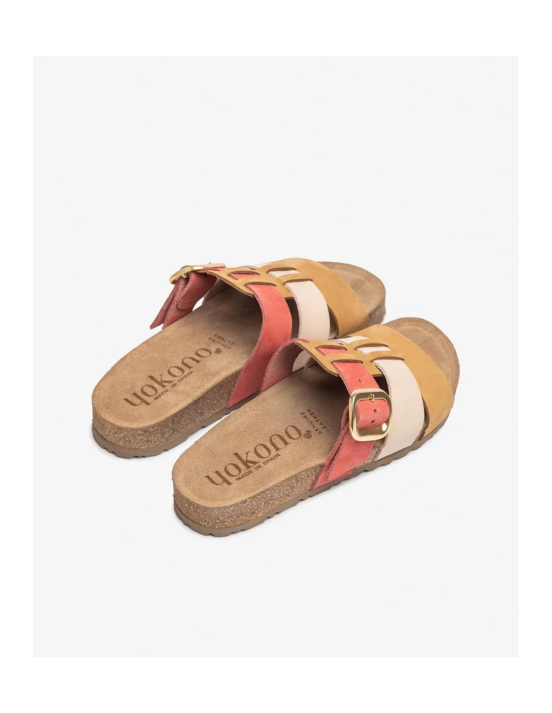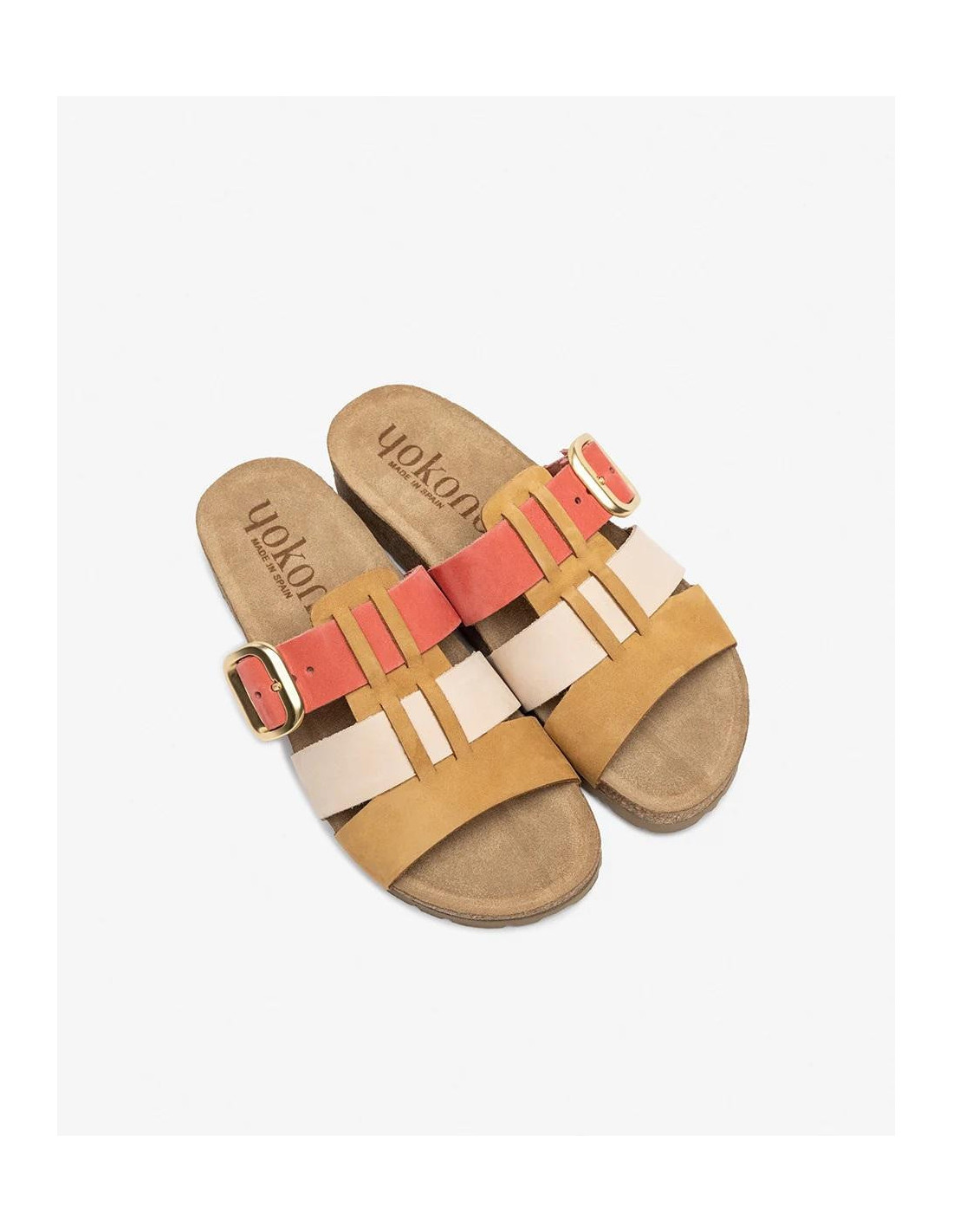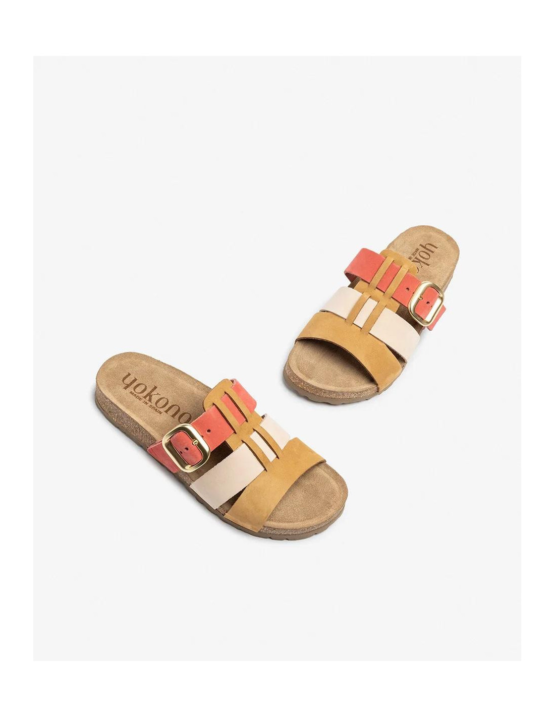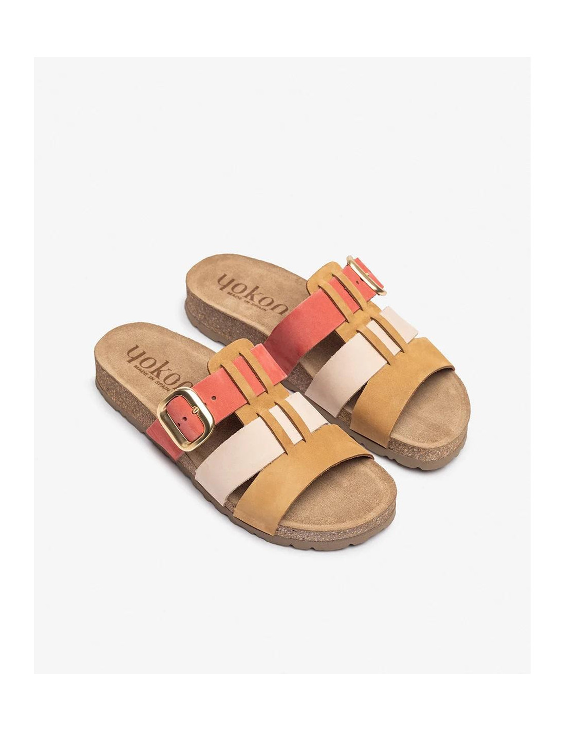Sandalia de plataforma de color verde con una altura de 3 cm. Tiene tres tiras de diferentes colores que le dan un toque de color a tus outfits más básicos. Cierre de hebilla.