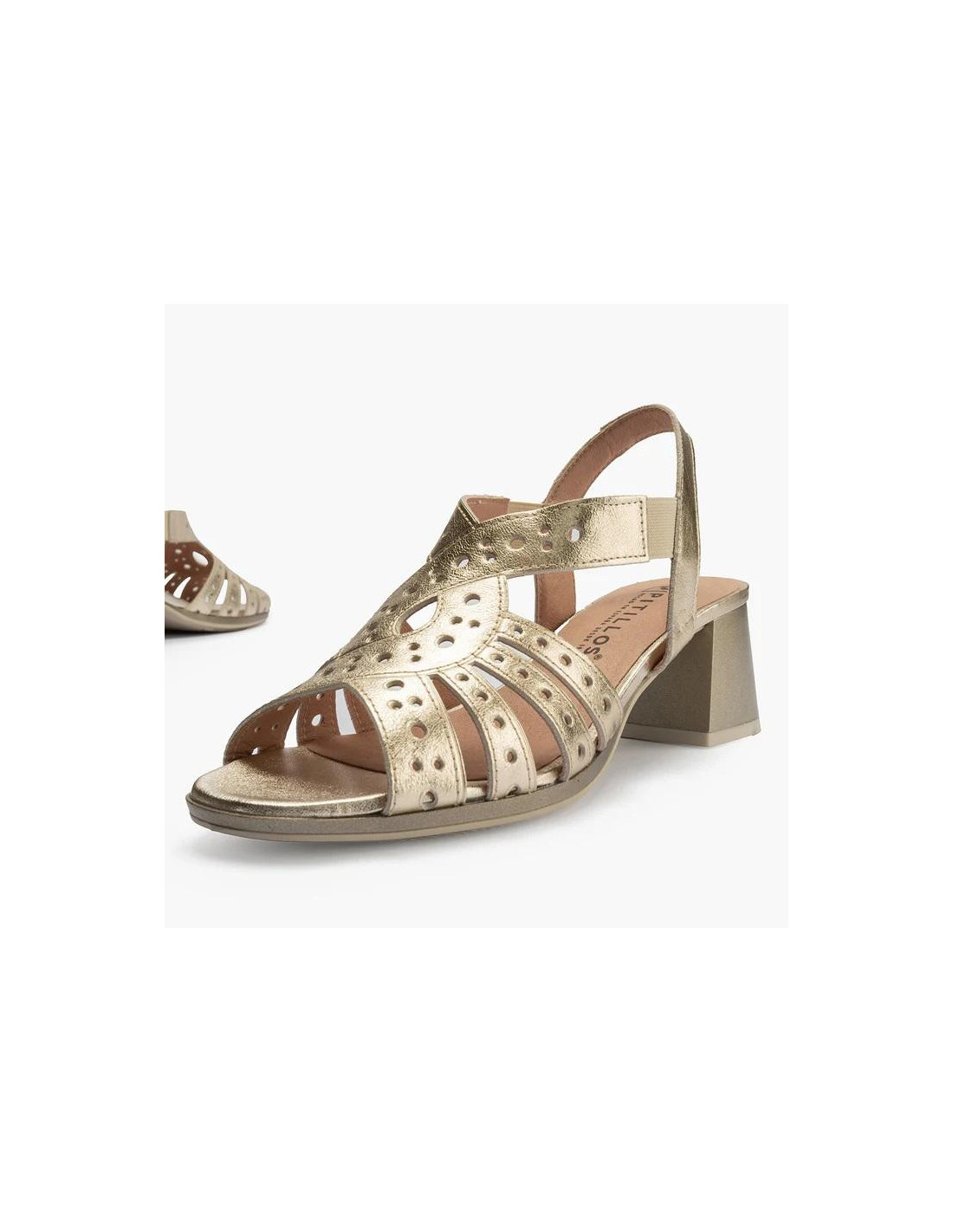 Sandalia mujer con elásticos en piel laminado NEGRO