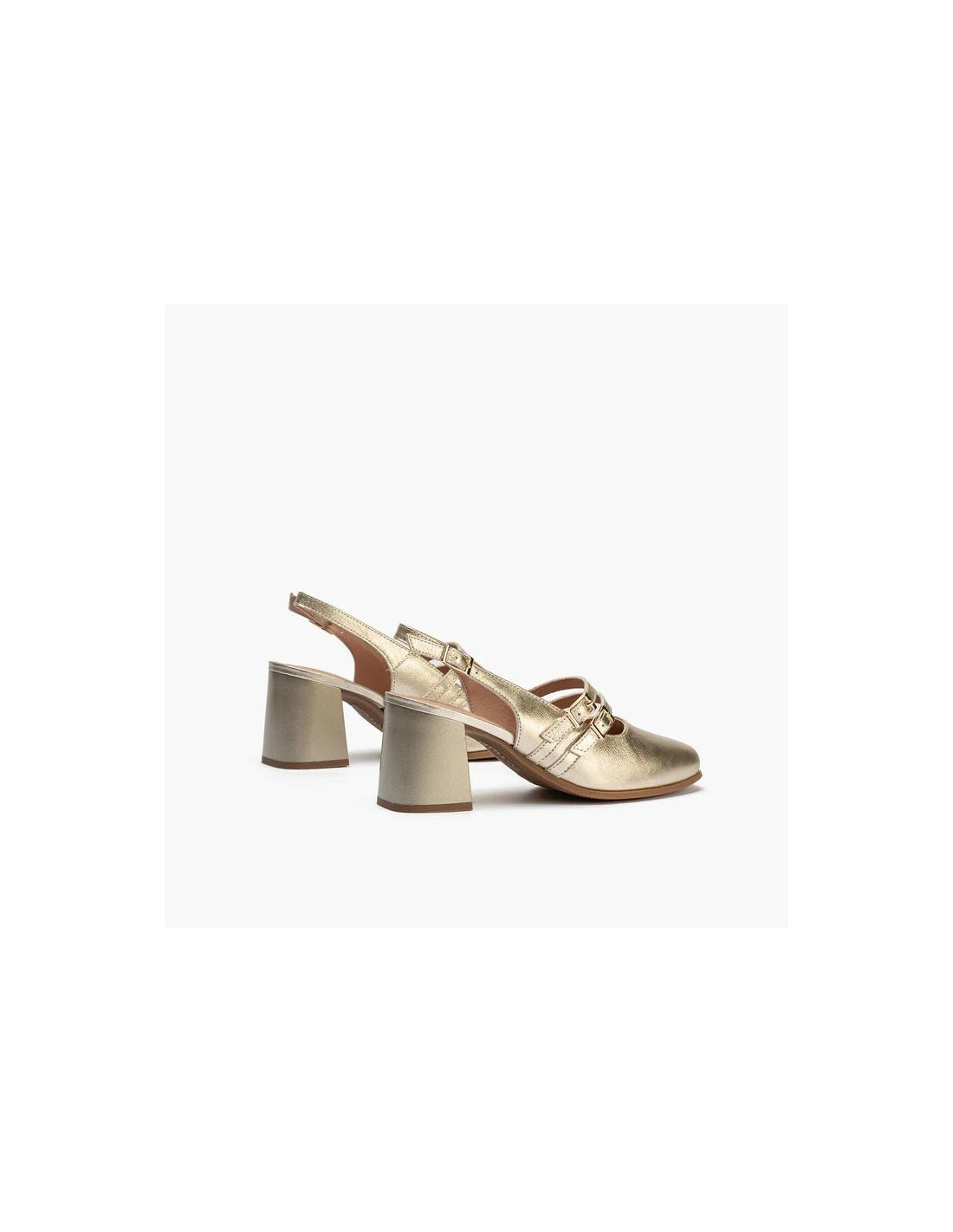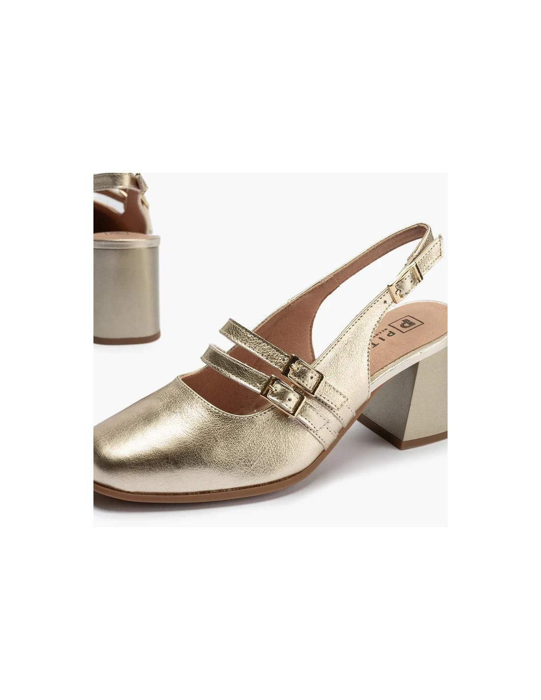 Mocasin en piel charol negro combinado en coco, cierre con velcro para mayor CONFORT.