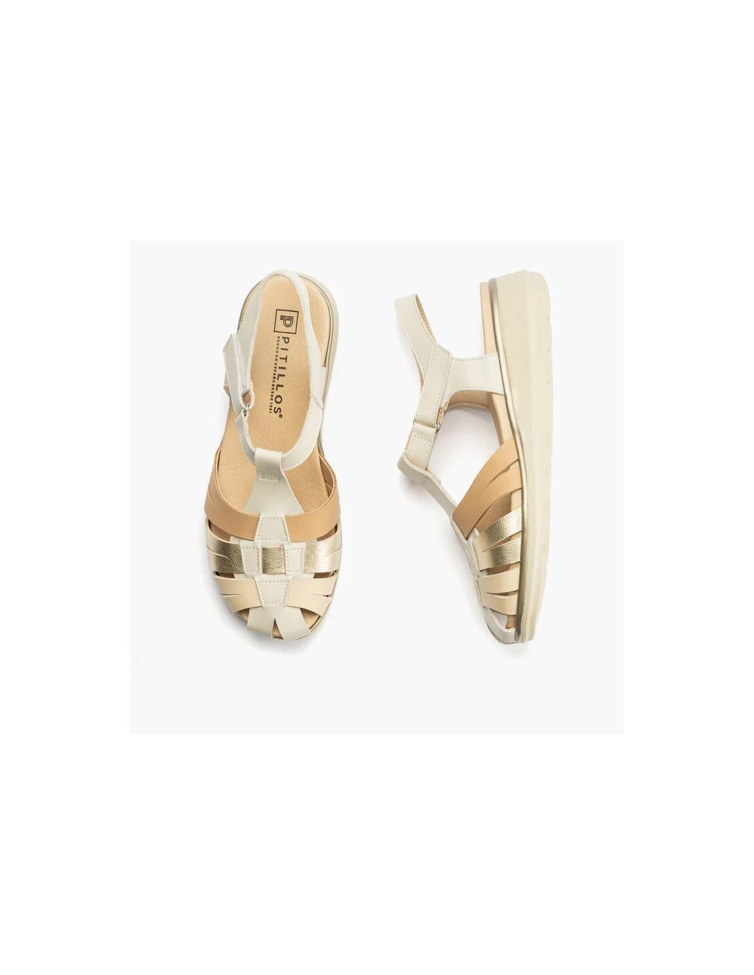 Sandalia cangrejera velcro en piel- PITILLOS 20110 - blanco