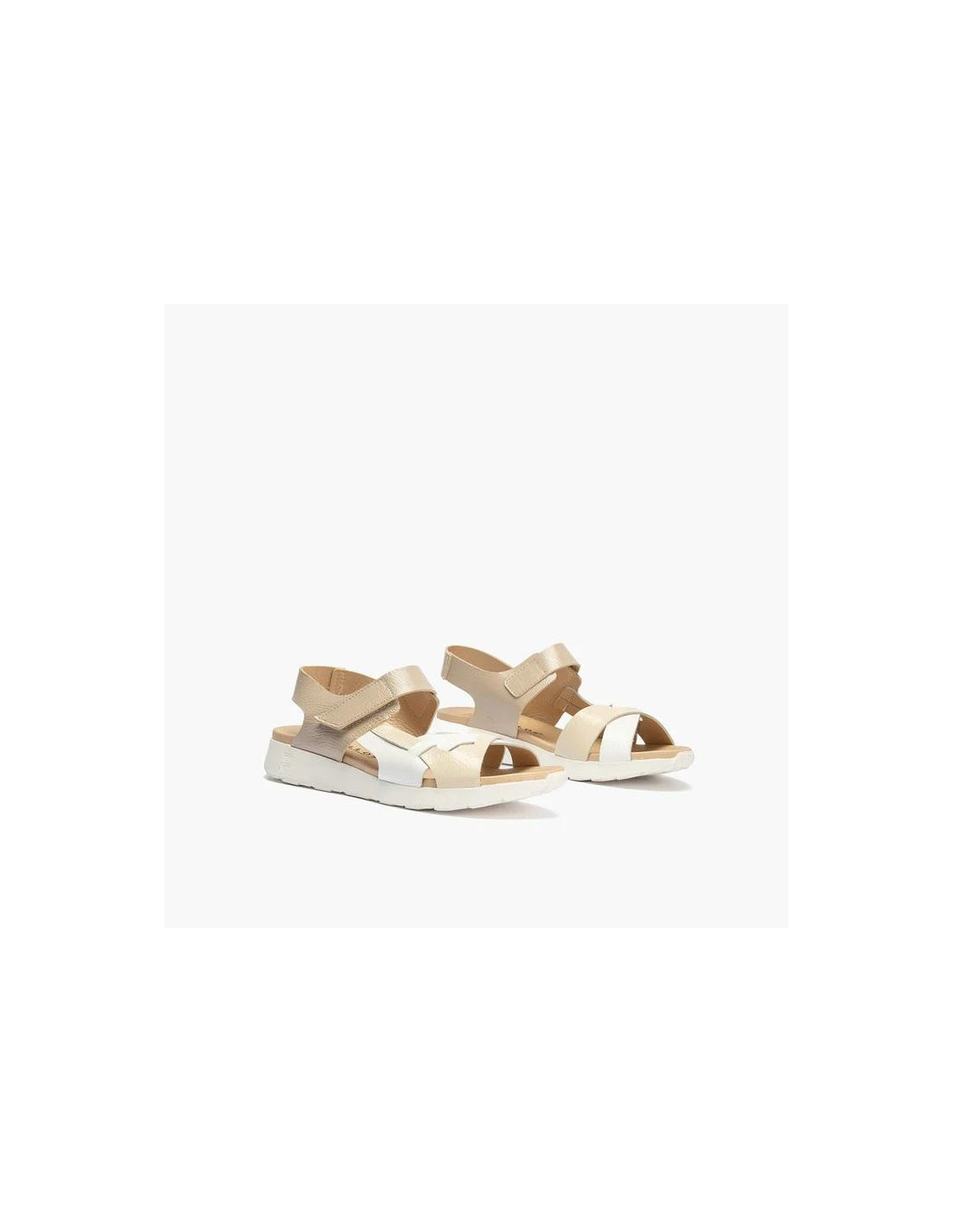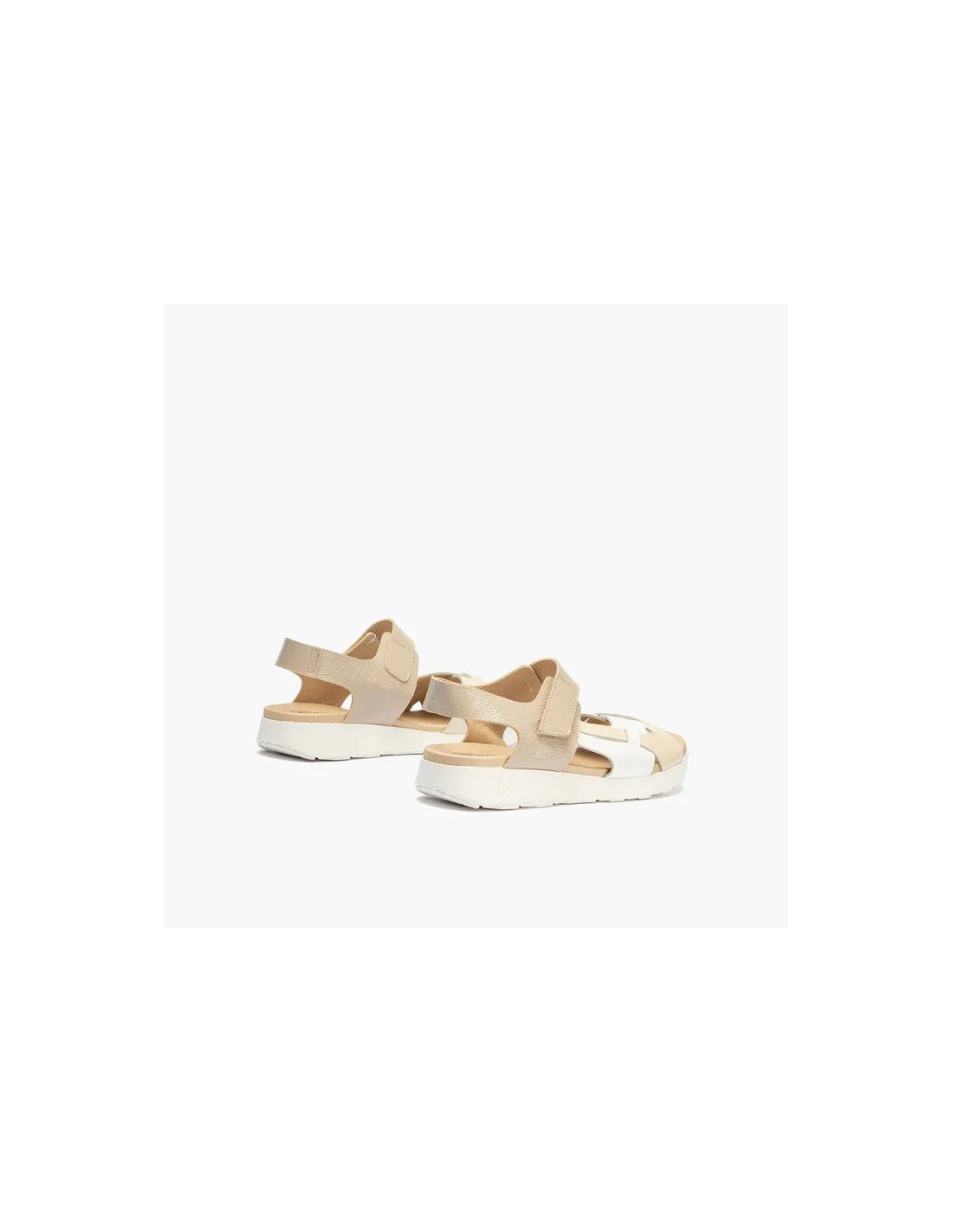 Sandalia tricolor mujer con velcro en piel charol - PITILLOS 10554 - crema
