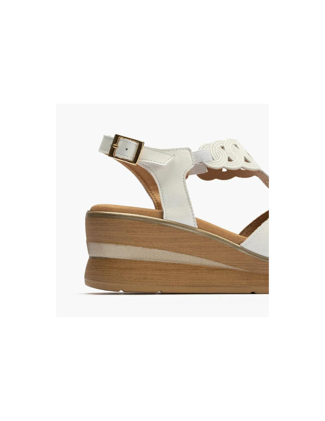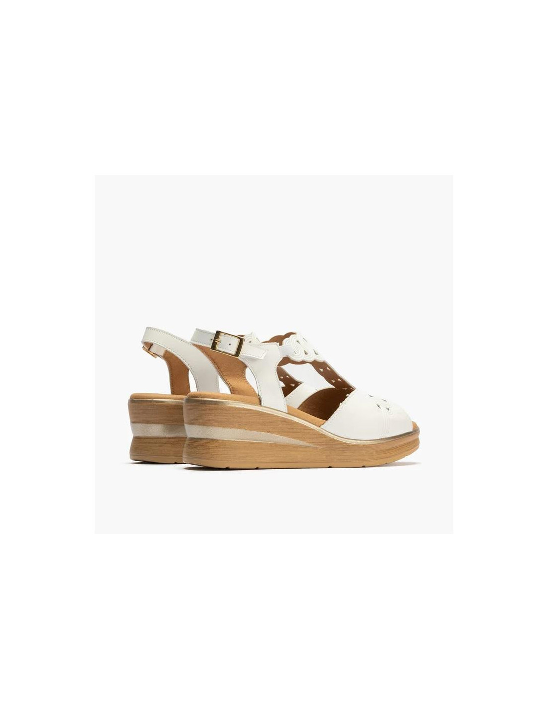 Sandalia plataforma mujer con hebilla en piel laminado ORO