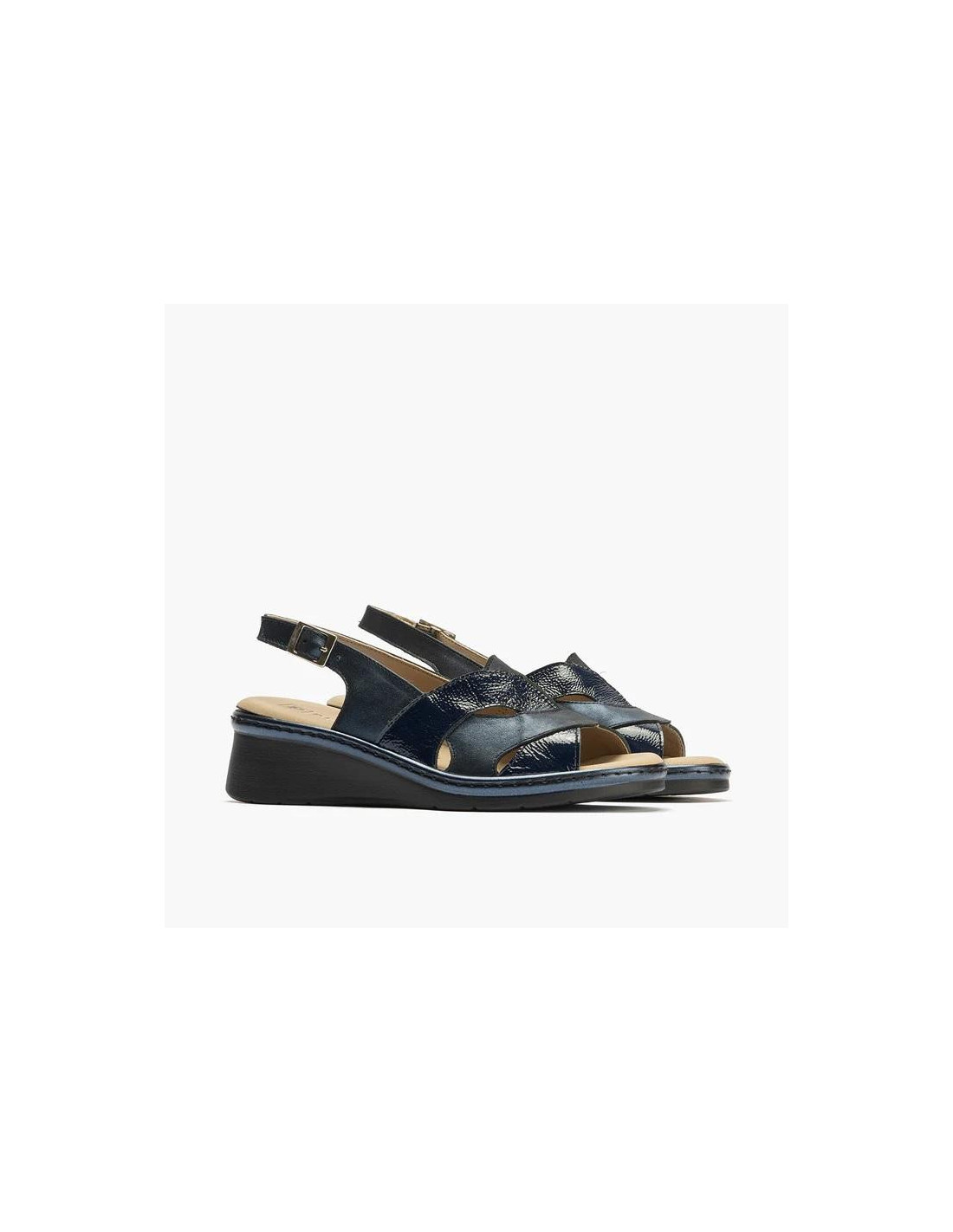Sandalia mujer con doble velcro en piel combinada CREMA