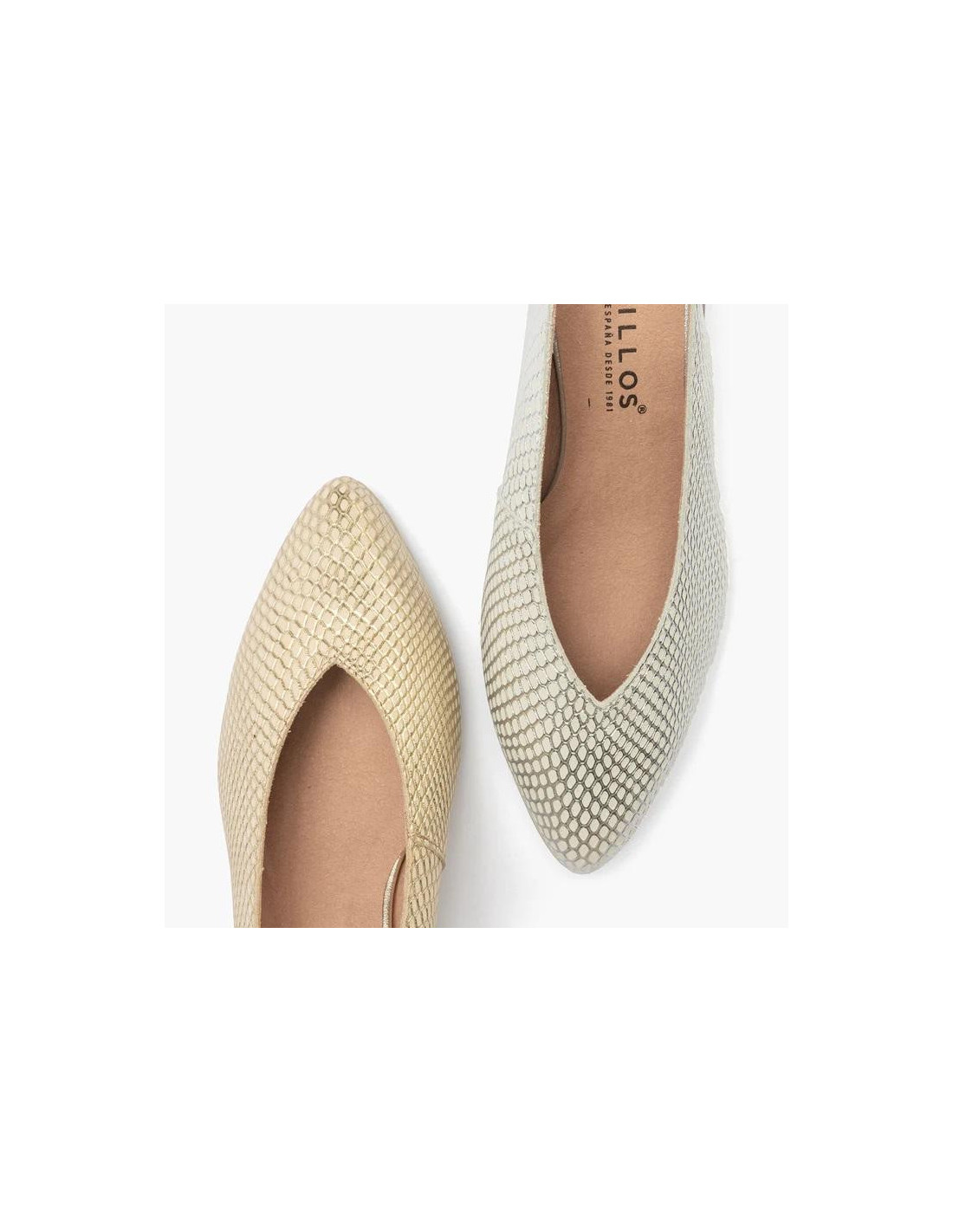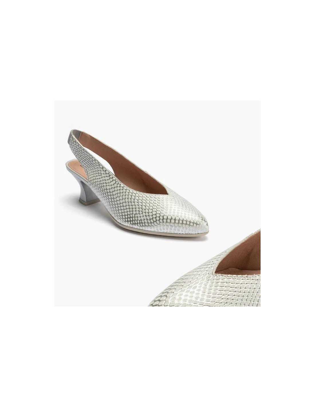 Salon de pico mujer con elástico en piel grabada fantasía ORO