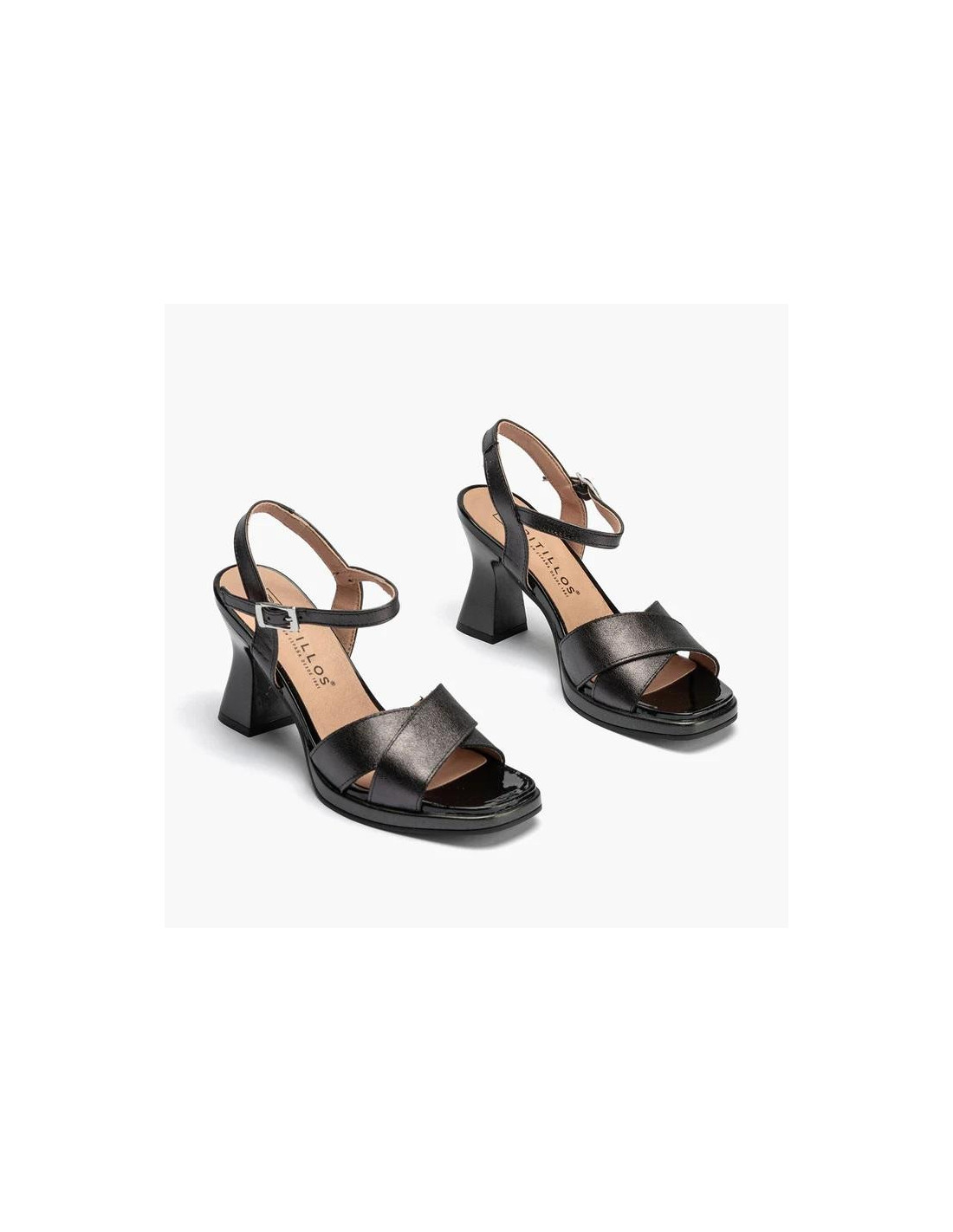 Sandalia con plataforma interior pala cruzada con hebilla en piel laminado - PITILLOS 10540 - negro