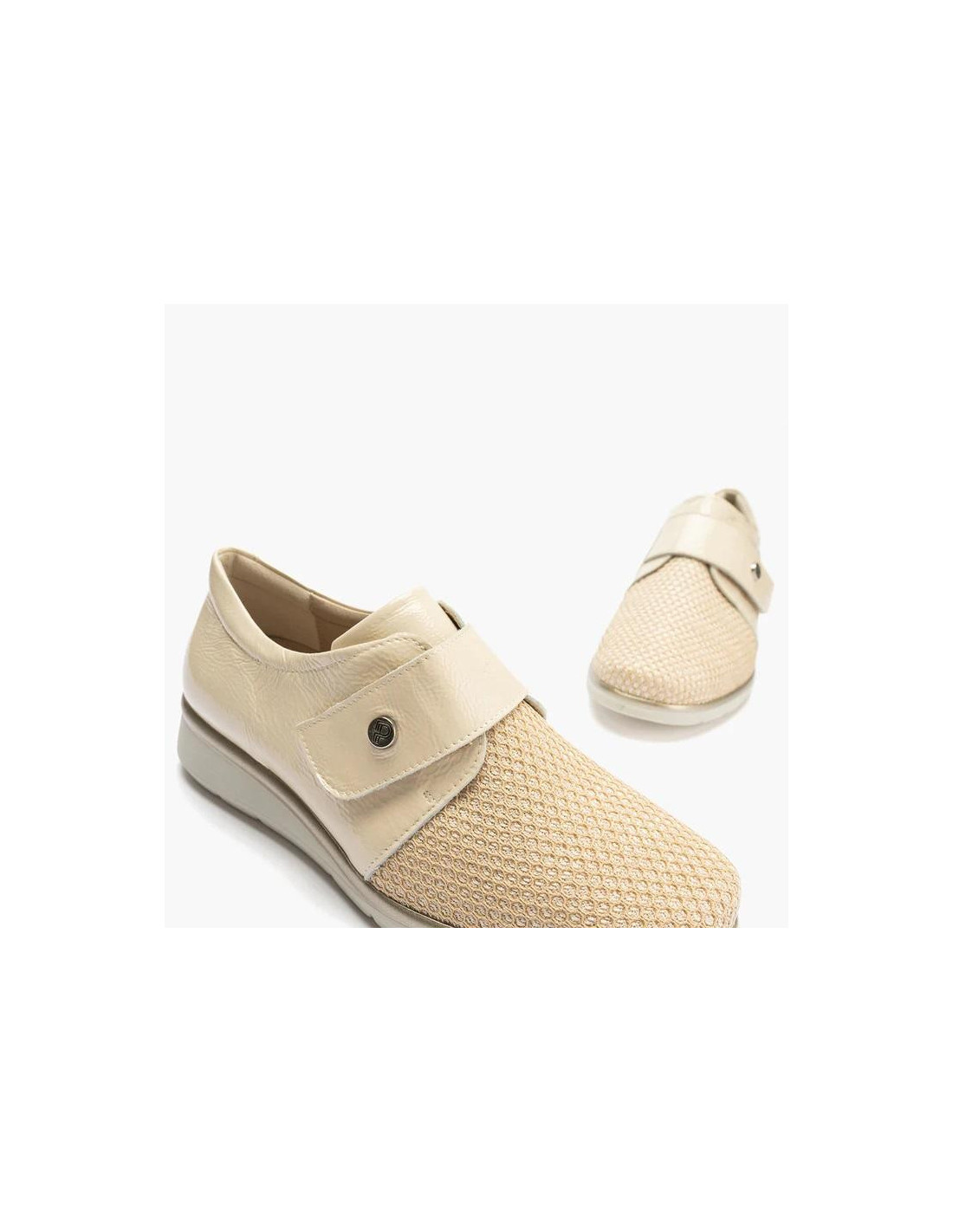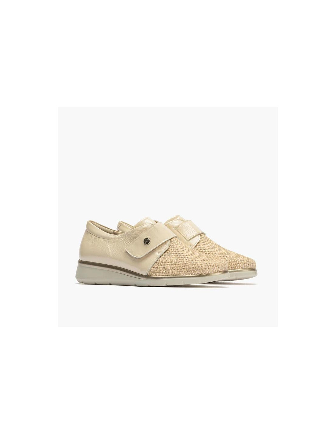 Blucher con rejilla mujer con velcro en piel charol CREMA
