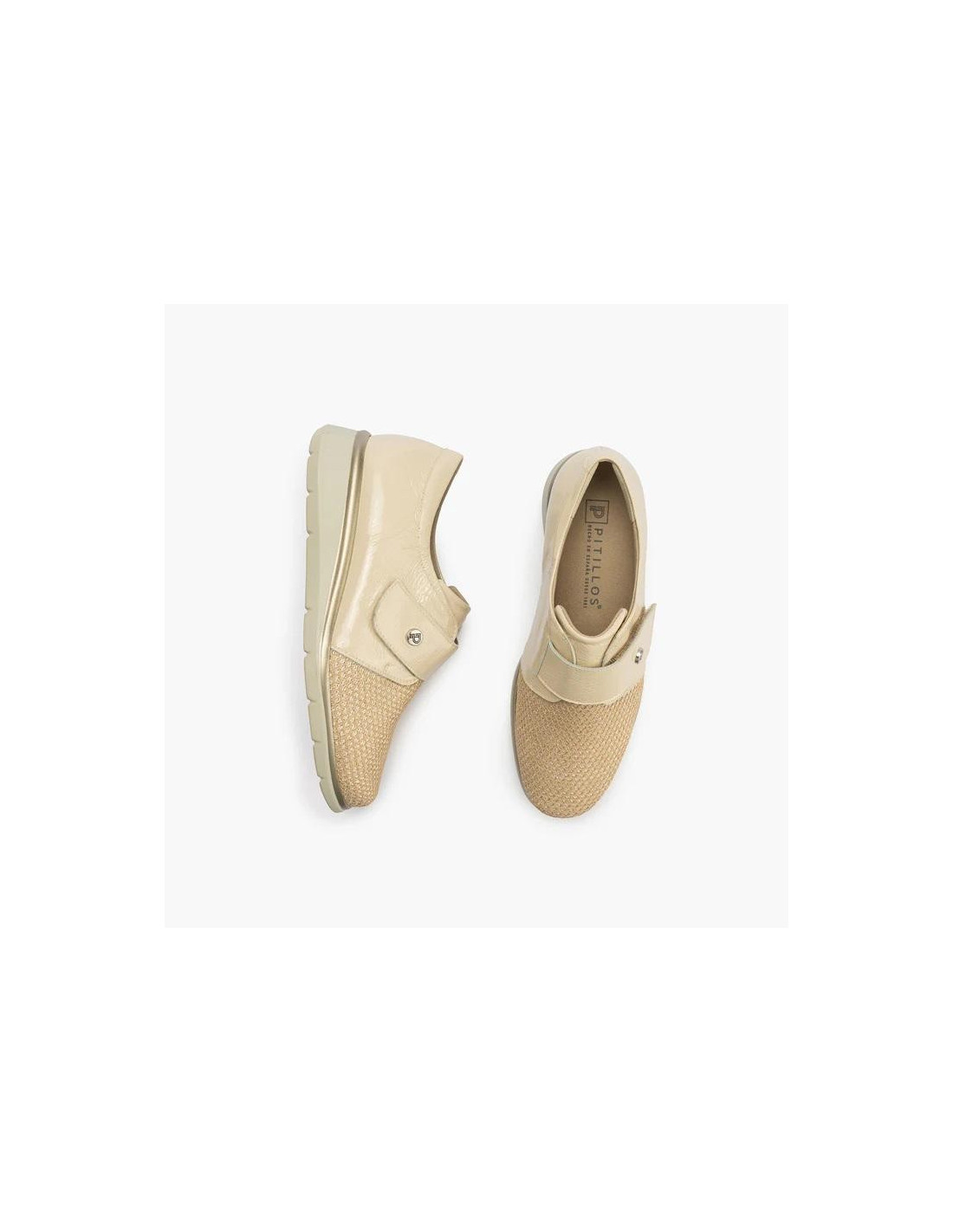 Zapatilla para mujer de la marca Cetti. Fabricado en piel/tejido, en color beig , piso volumen de 5cm, plantilla piel/acolchada, suela de goma y cierre elástico.