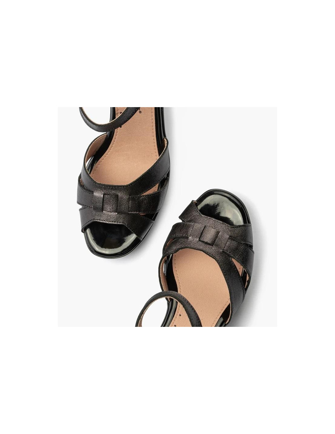 Sandalia mujer con tacón plataforma 3 tubulares con hebilla en piel laminada NEGRO