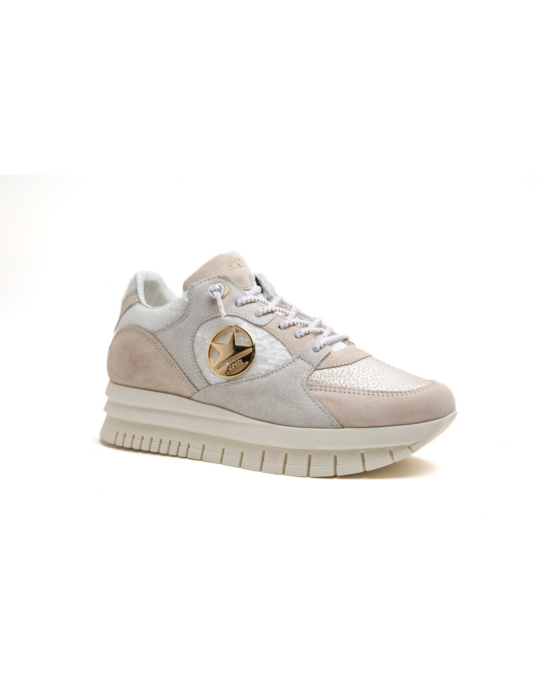 Deportiva mujer en piel cordón elastico - CETTI C1374 - hielo.