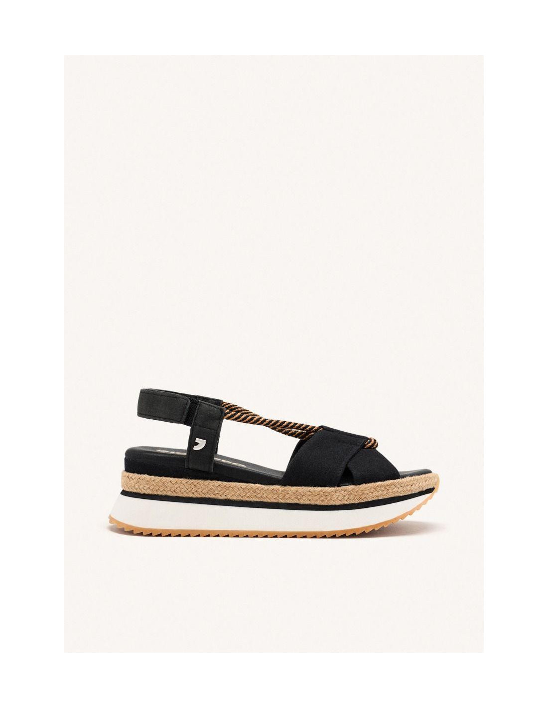 Sandalia de mujer de la marca Xti. Fabricada en antelina con detalle en el borde de color metalizado.