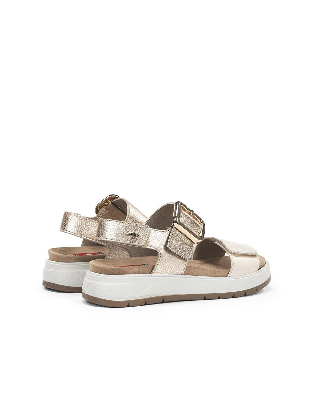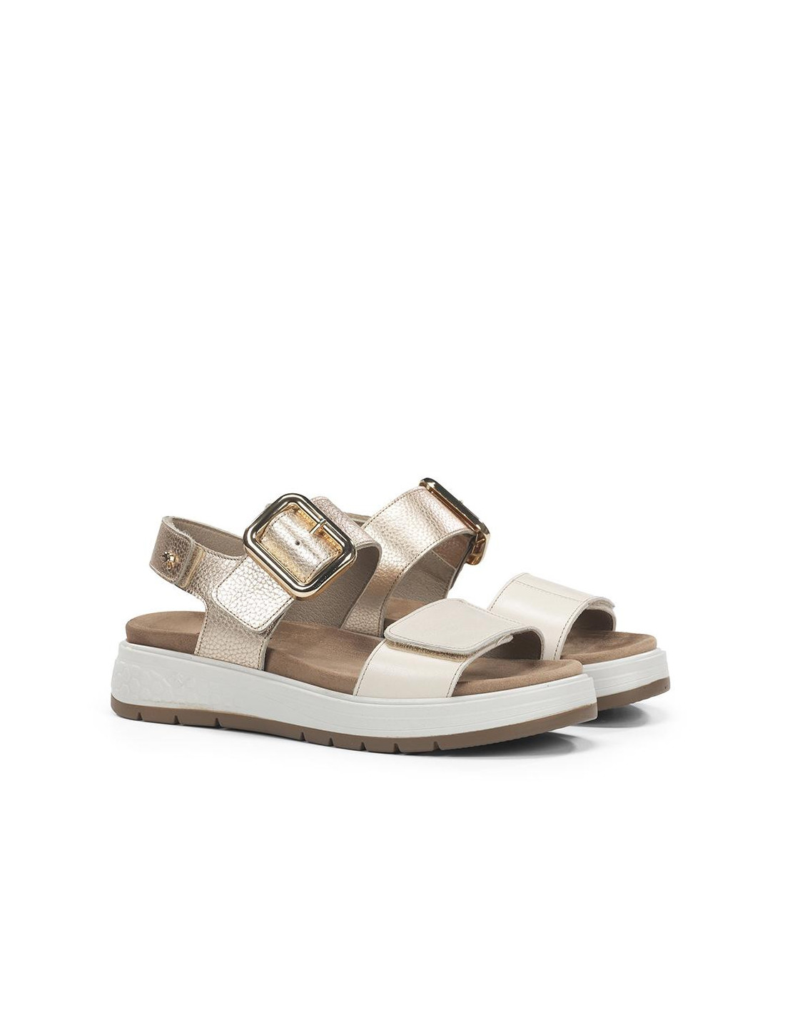 Bailarina trenzada dorada de punta fina, de la marca Xti. Material metalizado imitacion piel. Con pulsera y hebilla