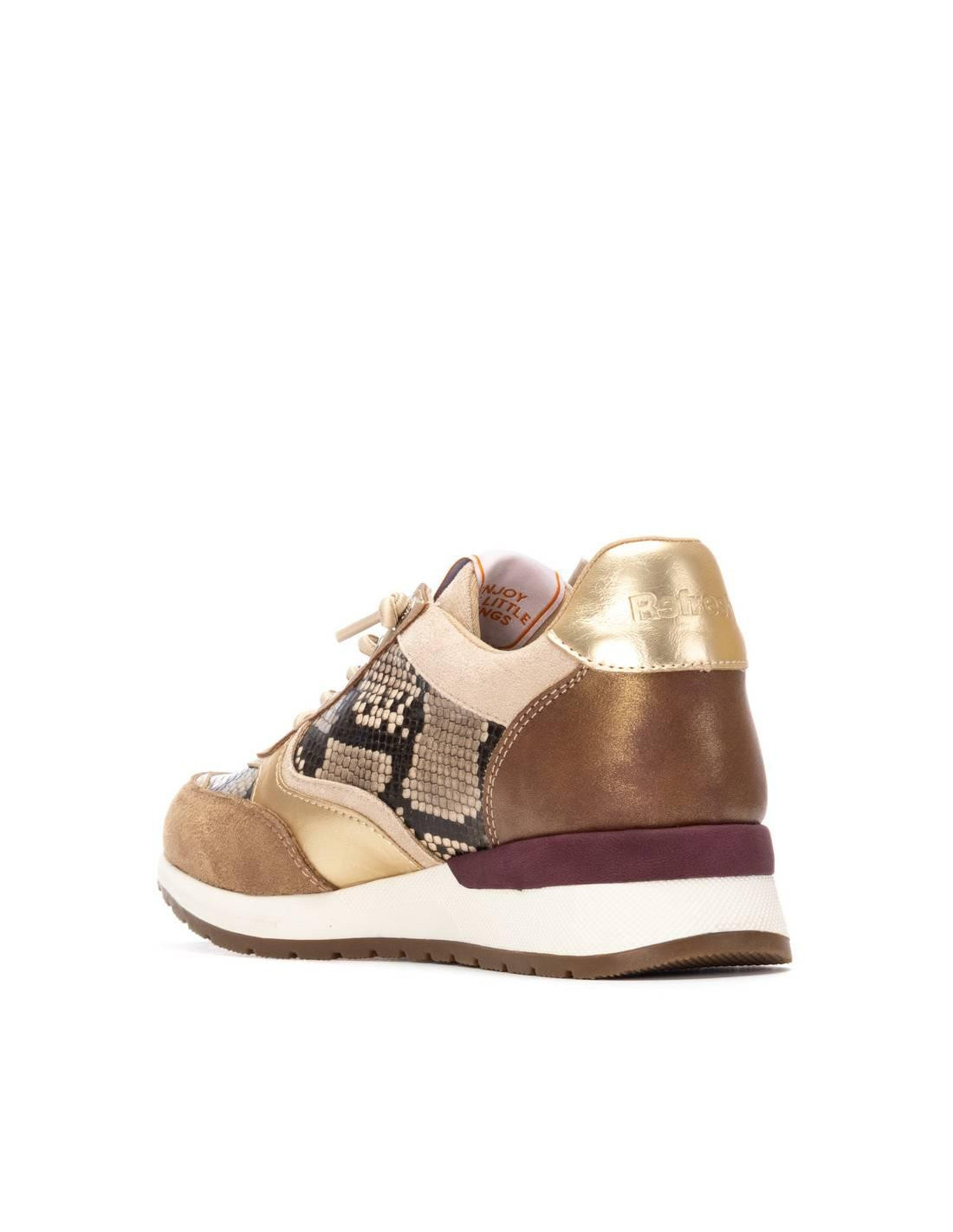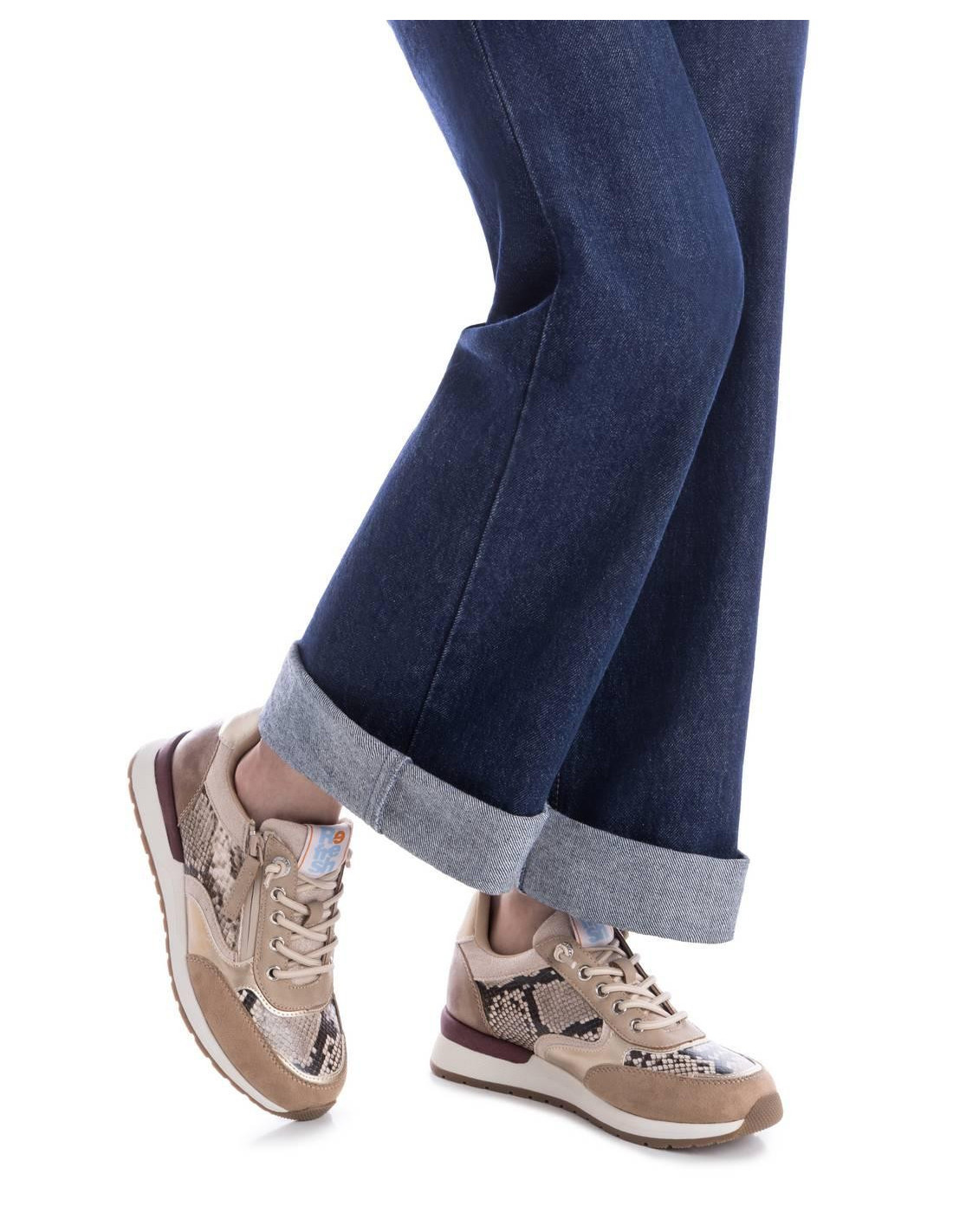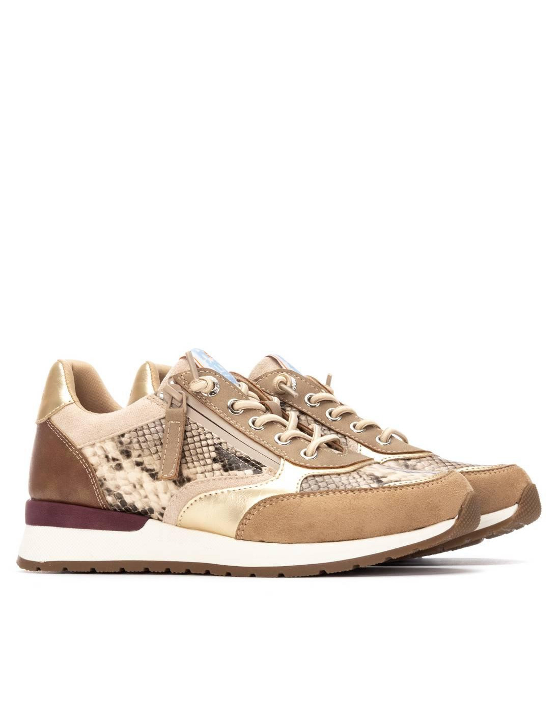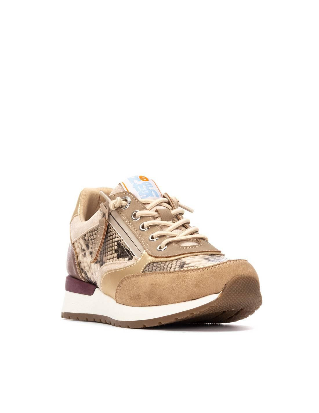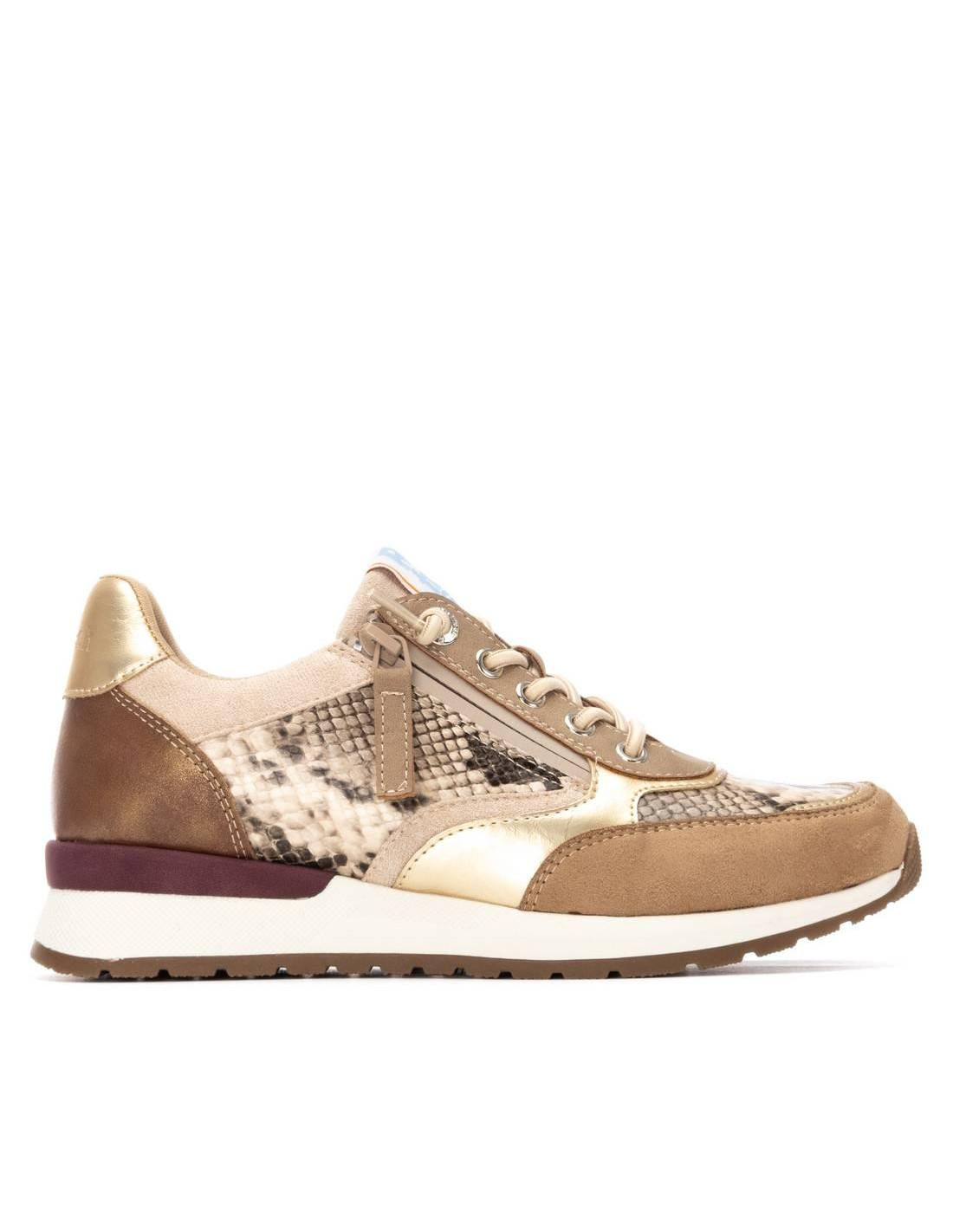 Zueco antelina camel tacón madera con tachas laterales y cadena en la pala.